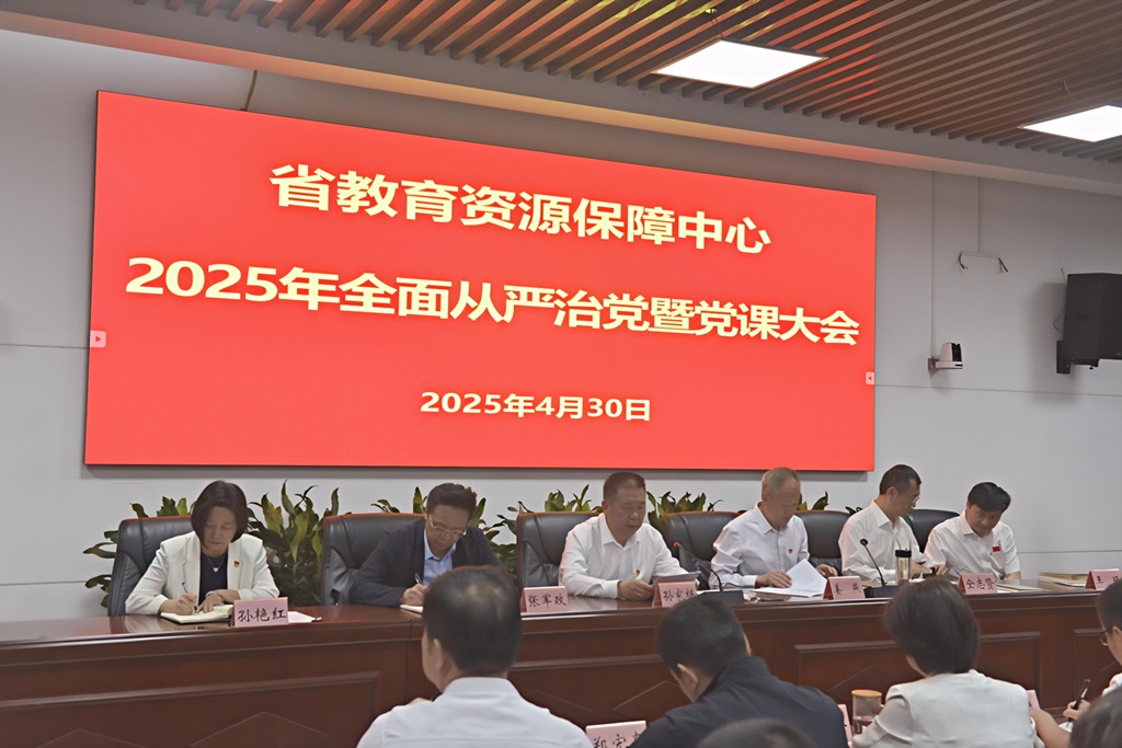 4月30日上午,省教育资源保障中心举行2025年全面从严治党暨党课大会。领导班子成员出席会议,全体党员干部职工参加会议。会议由姜燕书记主持。